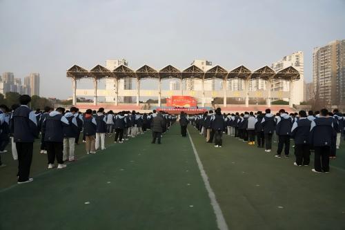 党总支书记钱云祥宣读三好学生、优秀学生干部等表彰决定,并表示,新学期伊始,希望学生们怀揣梦想,树立目标,勤奋学习,用知识武装头脑,用善行温暖他人,用奋斗书写青春华章。副校长王园一、丁强、朱青分别宣读“2025年元旦汇演获奖节目”“第十九届校园文化艺术节绘画比赛”“2024-2025学年秋学期优秀班集体”获奖名单。高三(25)班孙佳涵作为学生代表发言,鼓励同学们以坚定信念和昂扬斗志迎接挑战,创造辉煌,不负青春梦想。