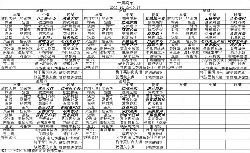 一周菜单(2025.10.13-10.17)